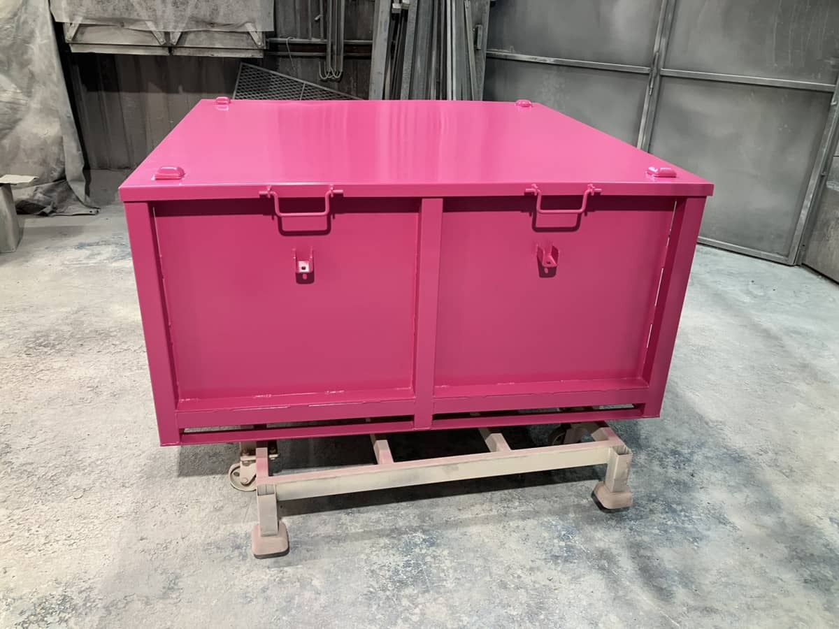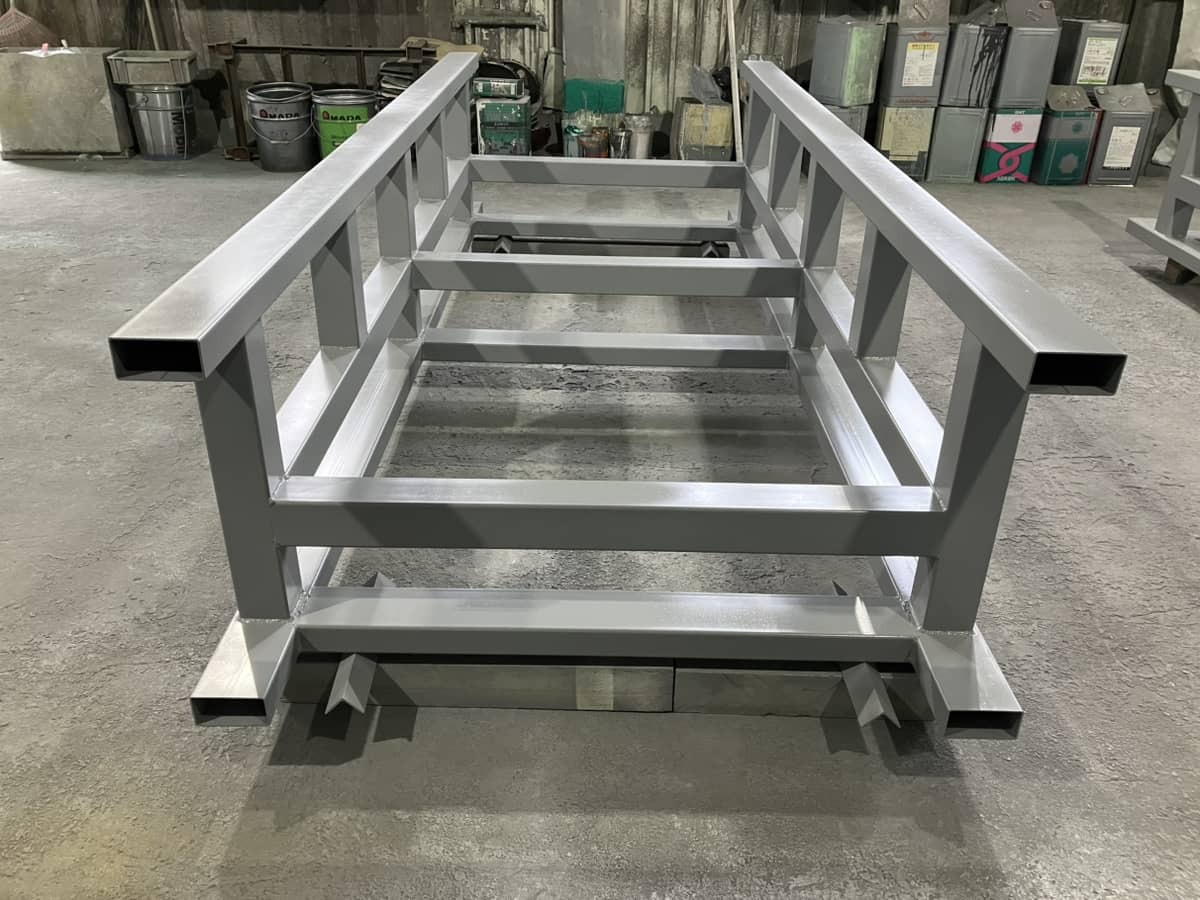 大型フレーム・台車・筐体など、4mクラスの長尺製品や重量物の塗装事例です。大型の粉体塗装はもちろん、溶剤塗装にも対応可能です。